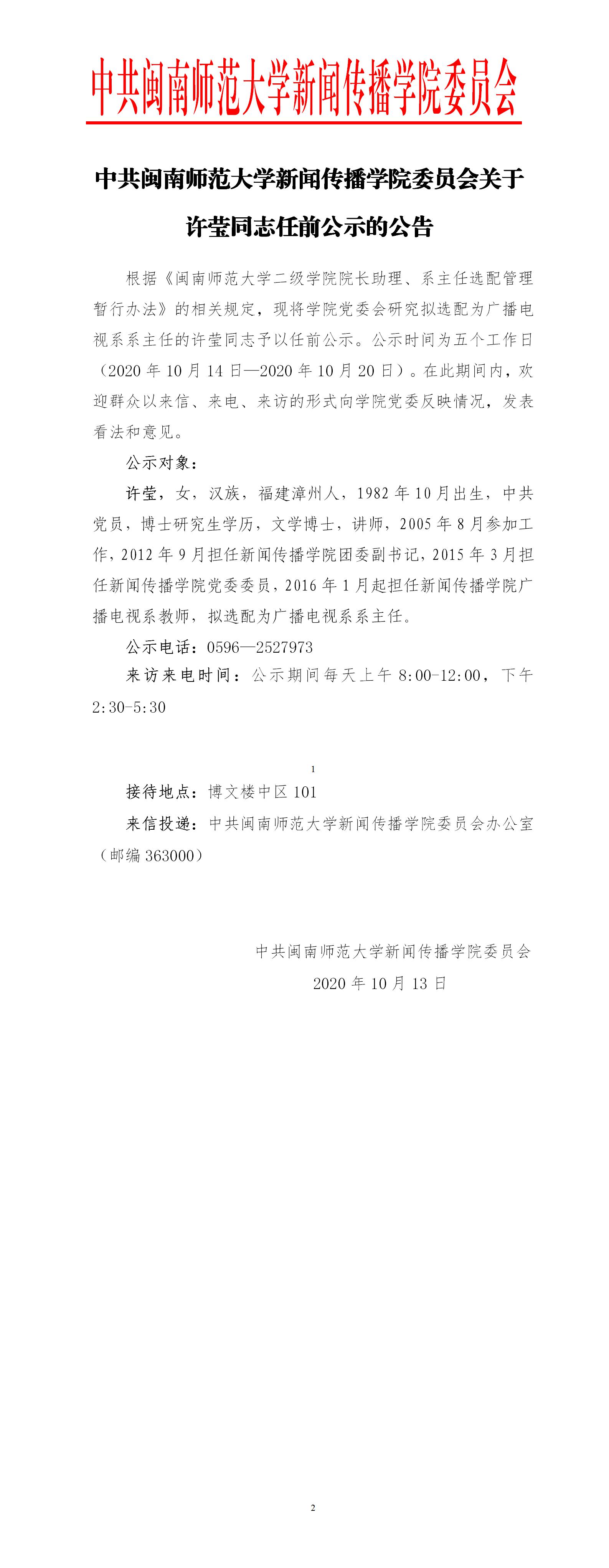 许莹同志任前公示的公告